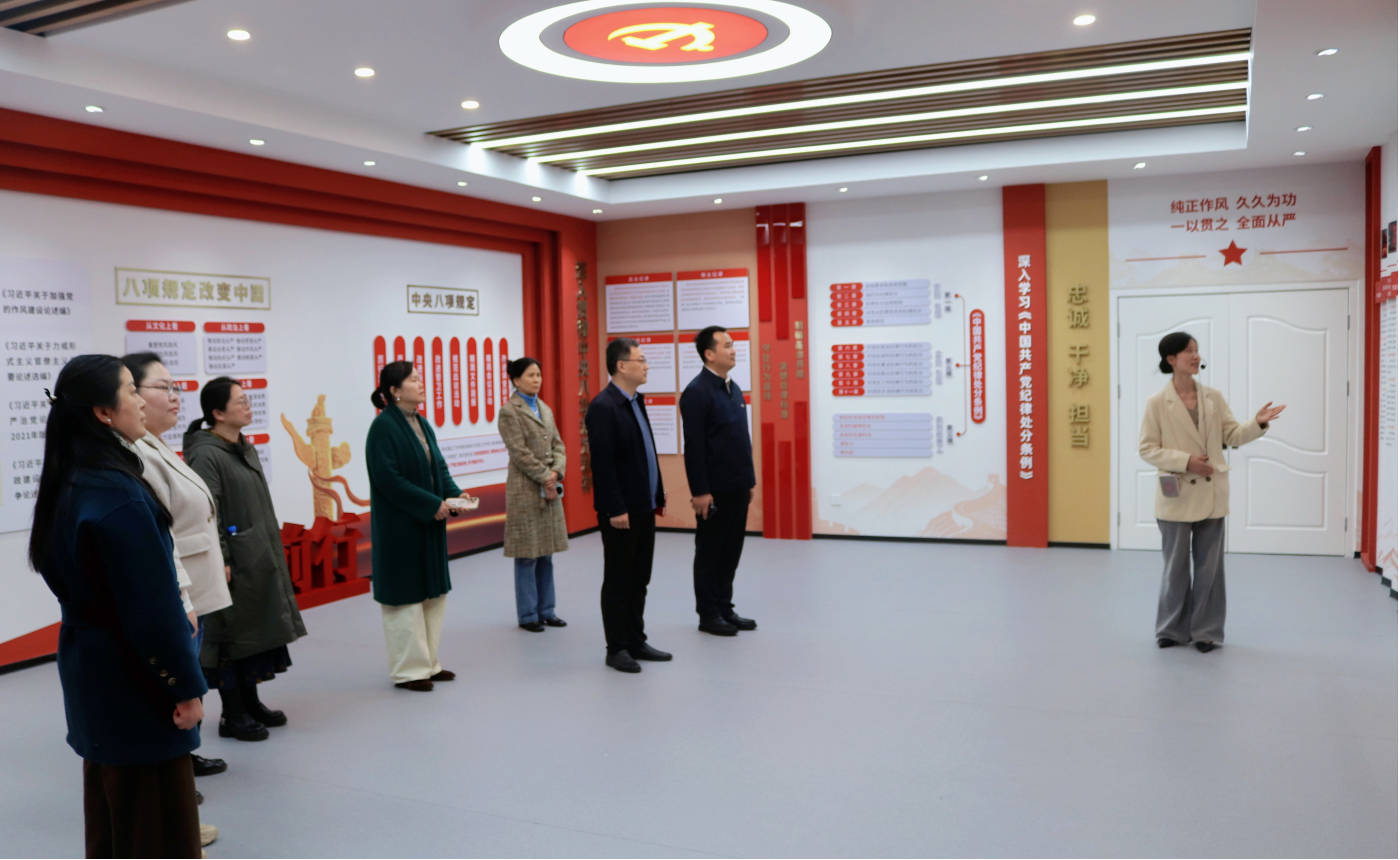 会后,统战成员参观了河南职业技术学院党风党纪学习教育馆、“五史馆”等教学展示阵地。在讲解员引导下,大家深入了解廉政建设、纪律建设和“五史”教育体系构建情况,受到一场鲜活的作风建设和“五史”教育洗礼。