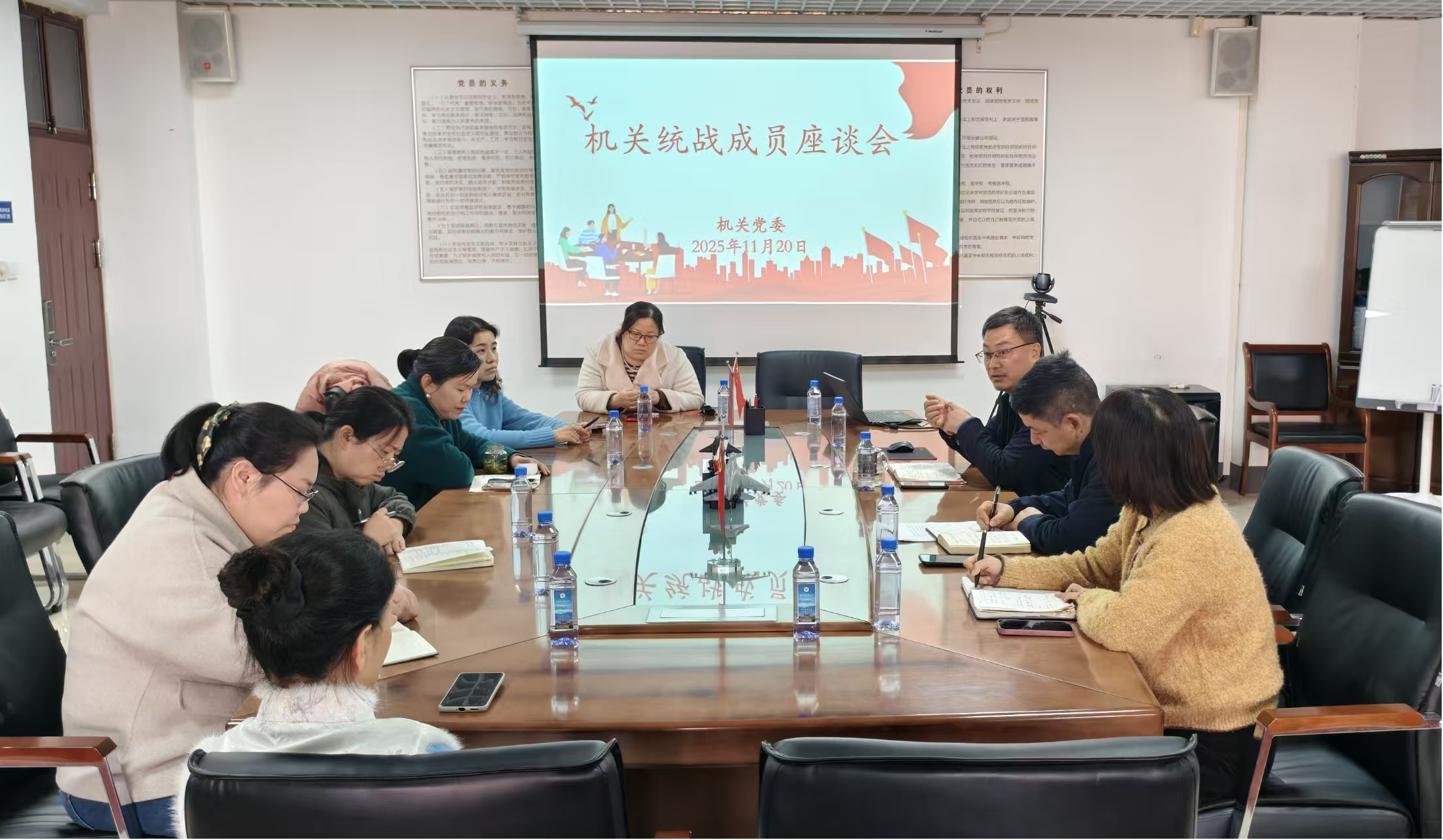 11月20日,机关党委在综合楼537会议室召开机关统战成员座谈会,学习宣传贯彻党的二十届四中全会精神,广泛凝聚共识、汇聚力量。机关统战成员代表参会,机关党委书记李庆丰主持座谈会。